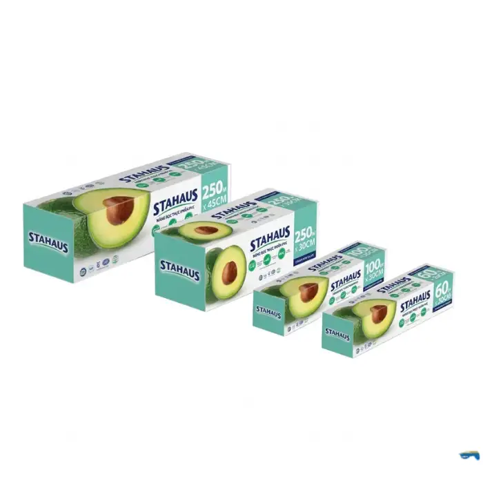 Bao Bì Sinh Thái tự hào là đơn vị phân phối màng bọc thực phẩm STAHAUS chính hãng, với đầy đủ các kích thước 30cm x 60m, 30cm x 100m, 45cm x 500m. Sản phẩm được cam kết nhựa PE nguyên sinh 100%, an toàn thực phẩm, dẻo dai, bám dính tốt. Quý khách có nhu cầu sử dụng cho gia đình, nhà hàng, bếp ăn công nghiệp, vui lòng liên hệ hotline để được tư vấn và nhận báo giá sỉ tốt nhất. Chúng tôi hỗ trợ giao hàng tận nơi, xuất hóa đơn VAT cho doanh nghiệp.