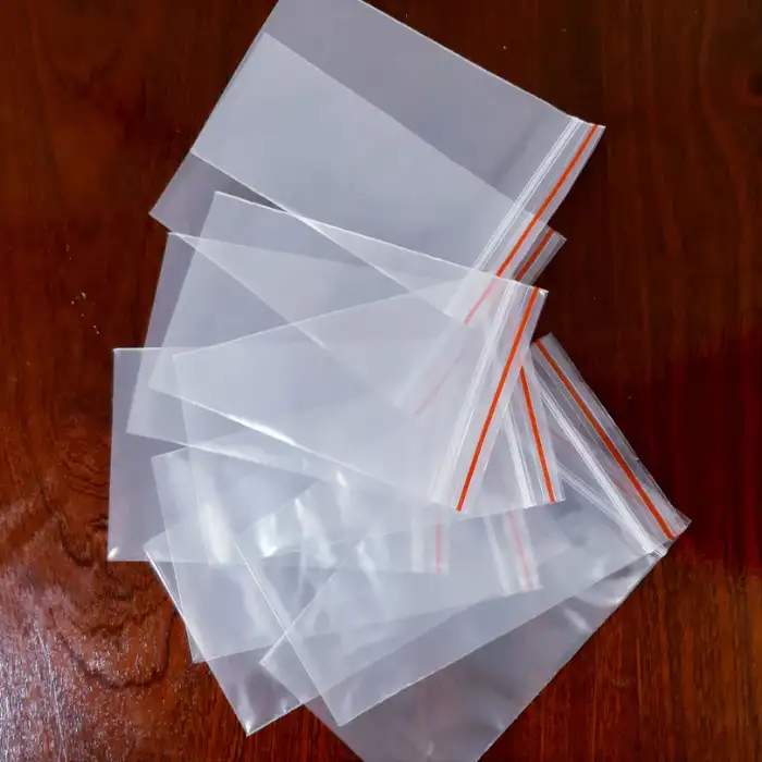 Màu sắc: Trong suốt, khóa zip chỉ đỏ nổi bật