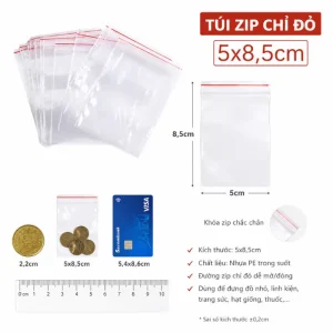 Túi zip chỉ đỏ 5×8.5cm trong suốt đựng đồ nhỏ gọn